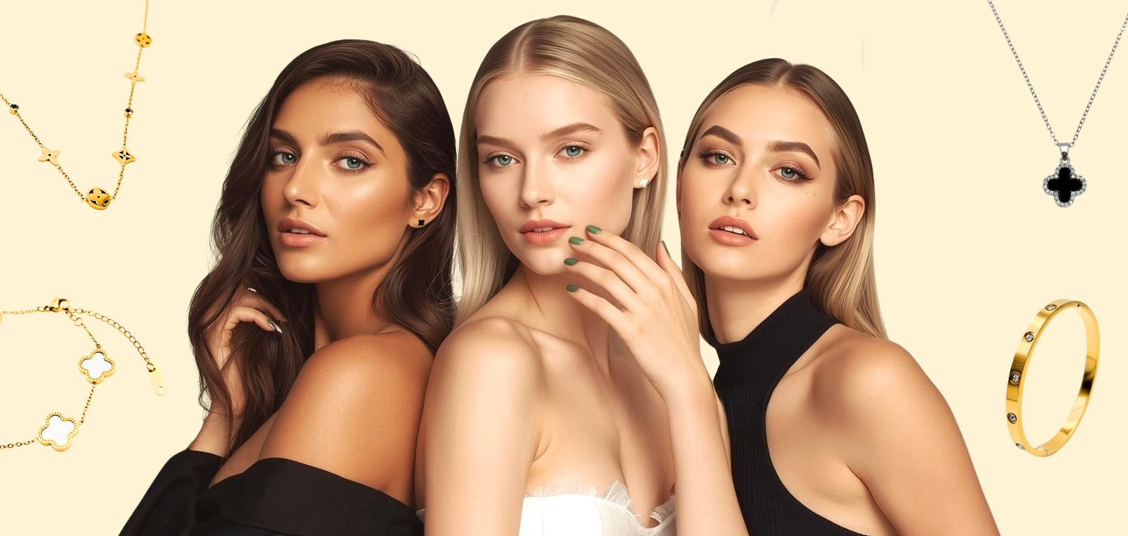 White Shiny Clover Armband | 18K vergoldet